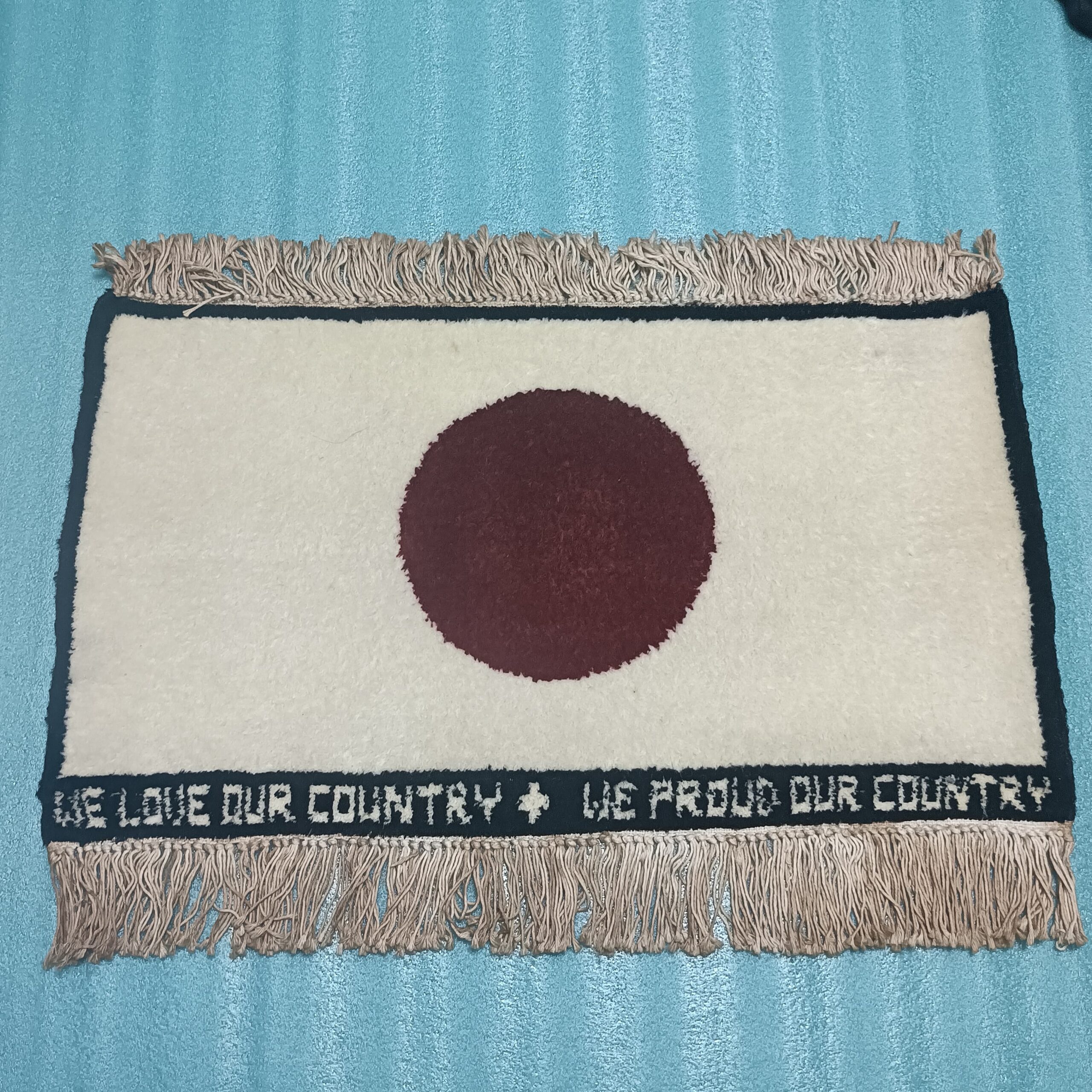 2′ x 1′ Japan Flag with Patriotic Caption Hand Knotted Woollen Rug