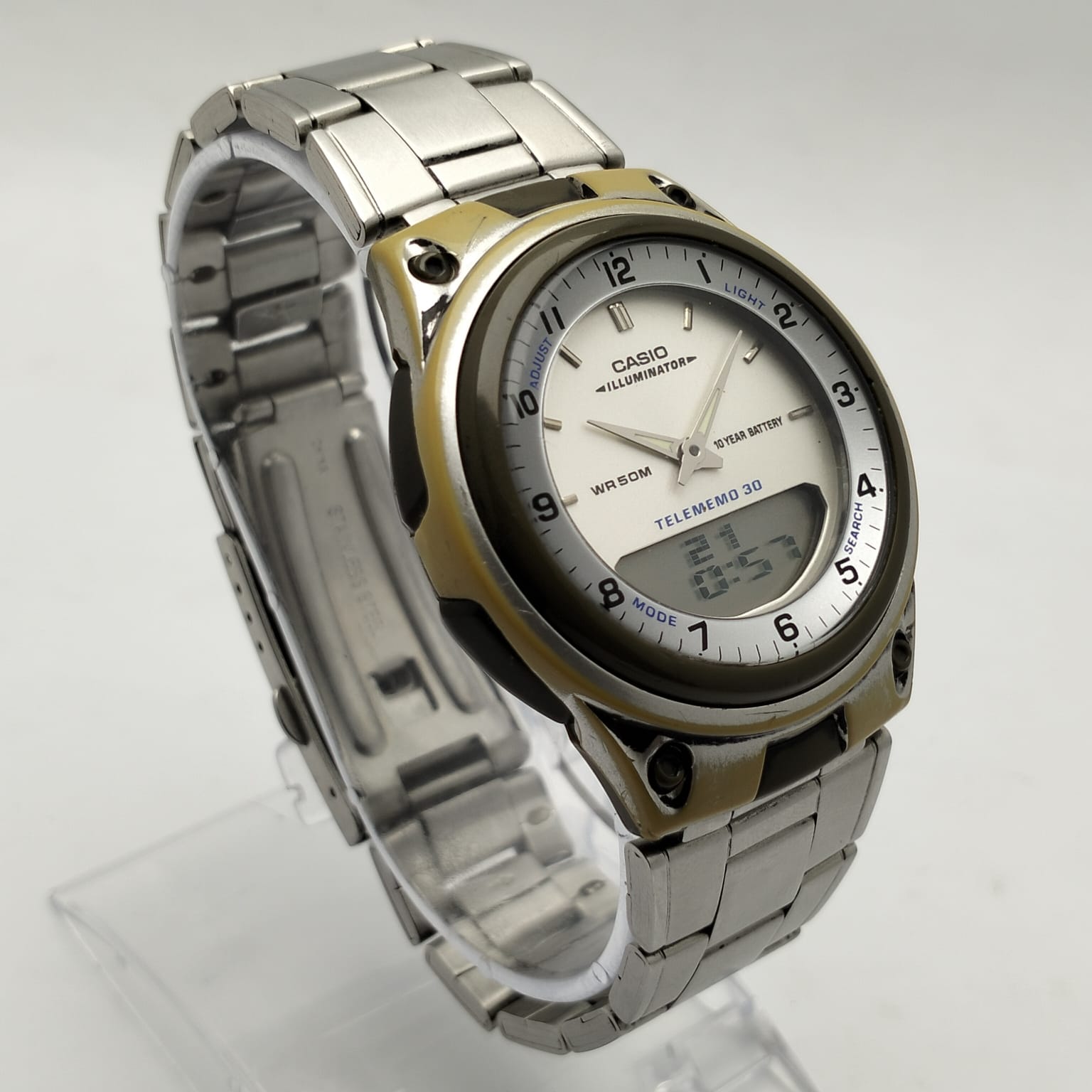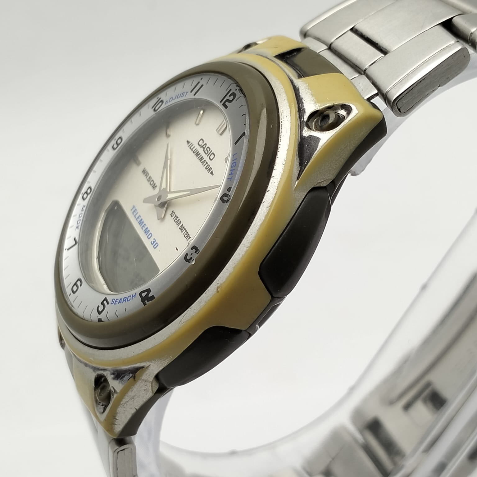 | Model: | Casio Illuminator | Features: | Alarm, Chronograph, World Time, 12 Hour Dial, Day/Date, Light |