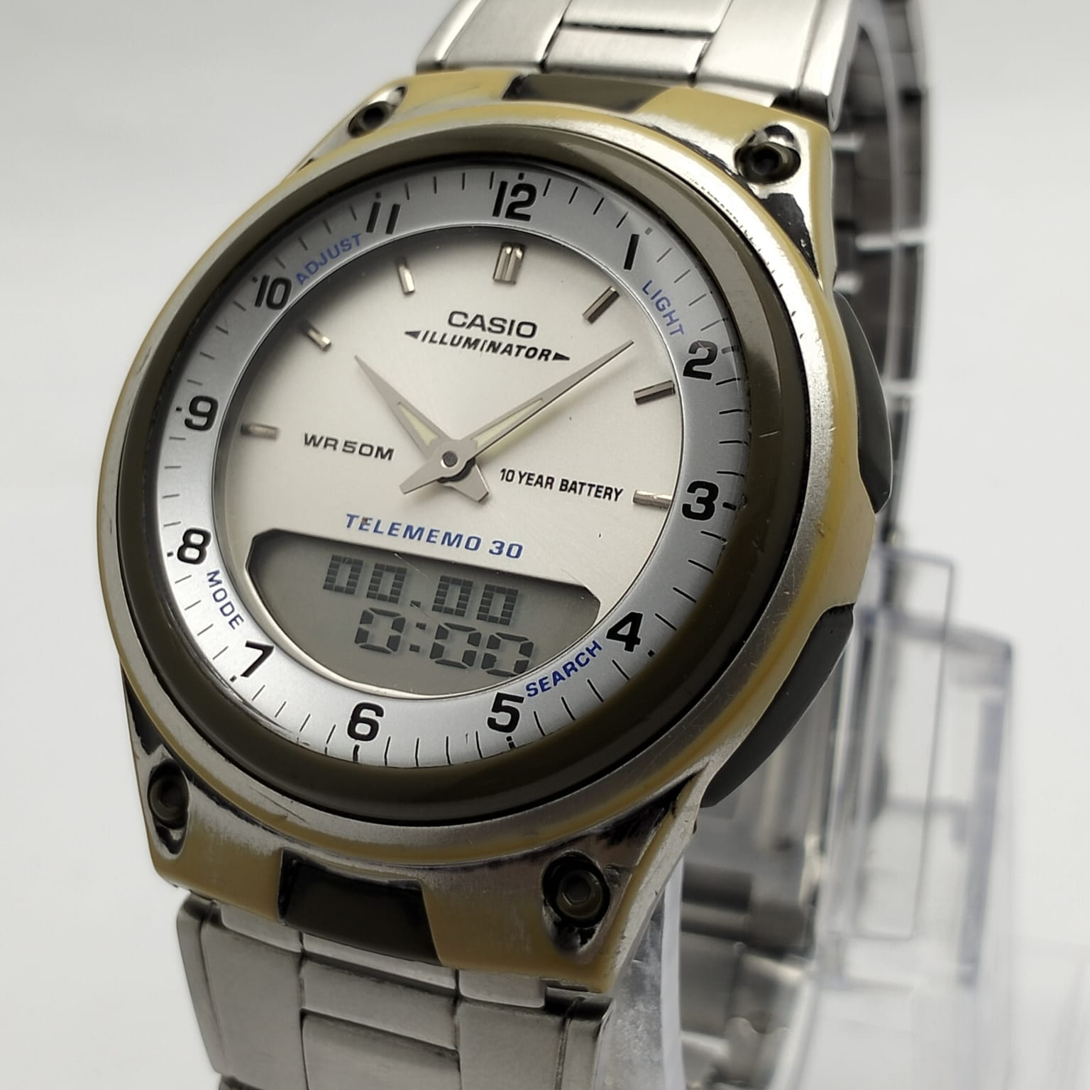Casio Illuminator Telememo 30 Alarm World Time AW-80 AnaDigi Vintage Watch