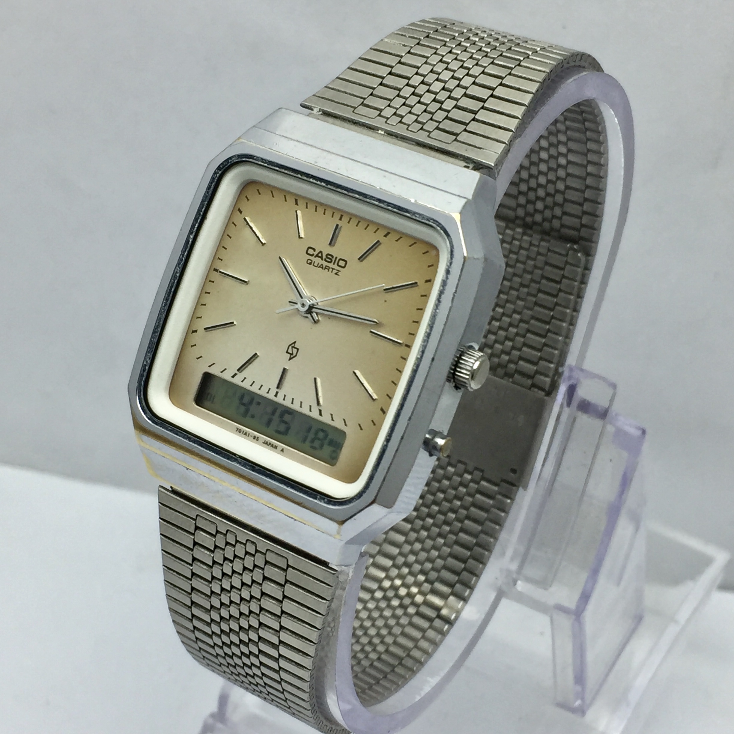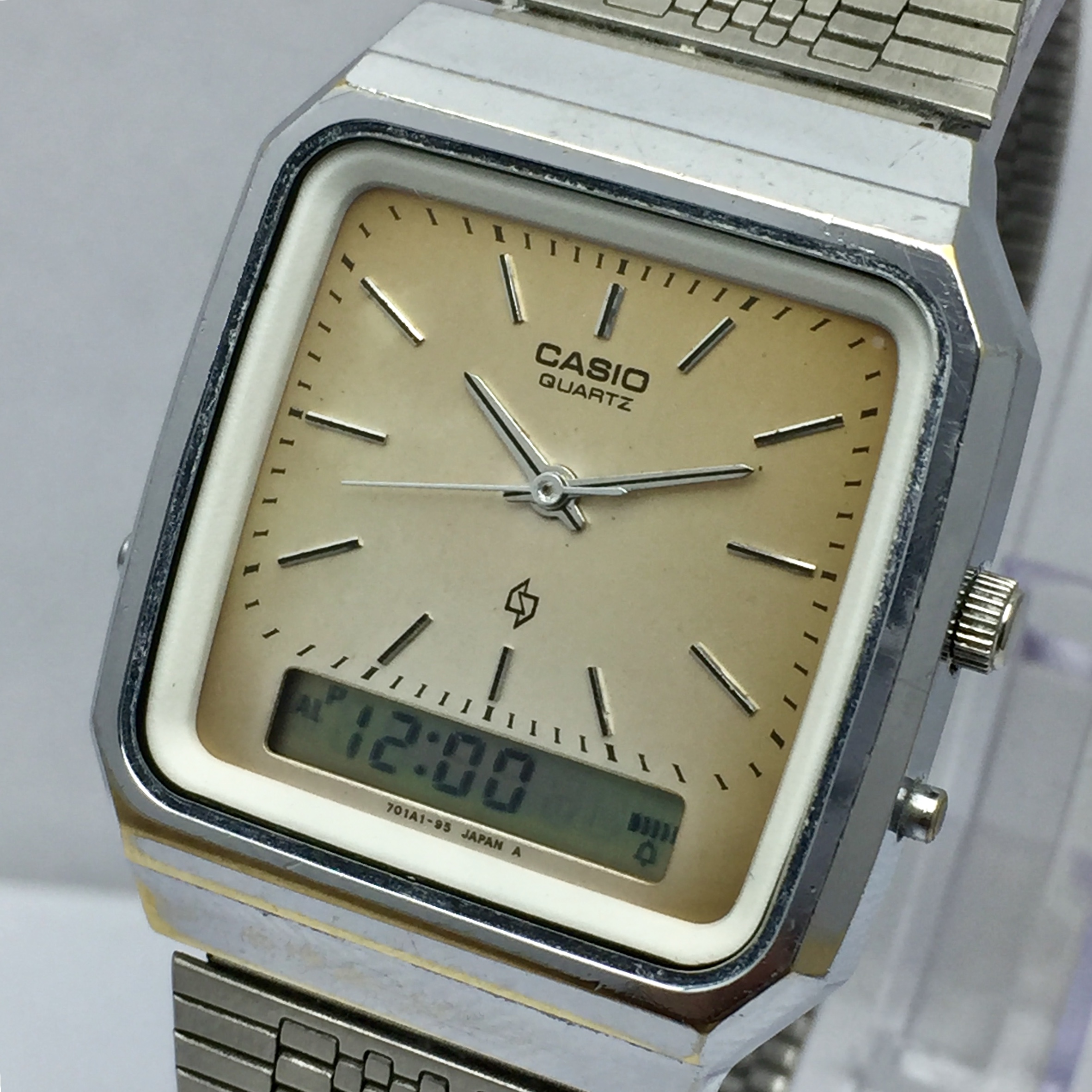 Casio Quartz 305 AQ-300 Ana-Digi Patina Dial Vintage Men’s Watch