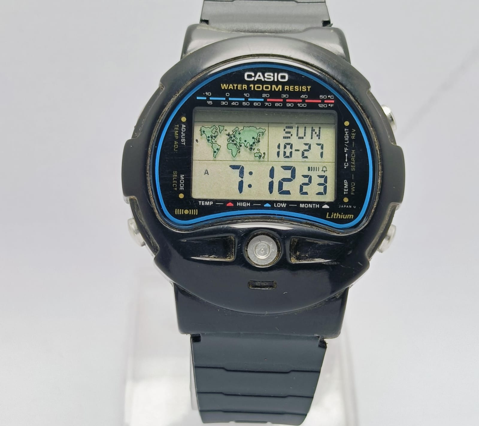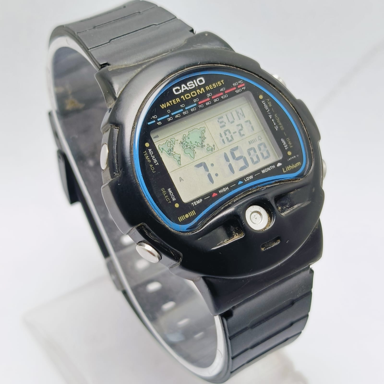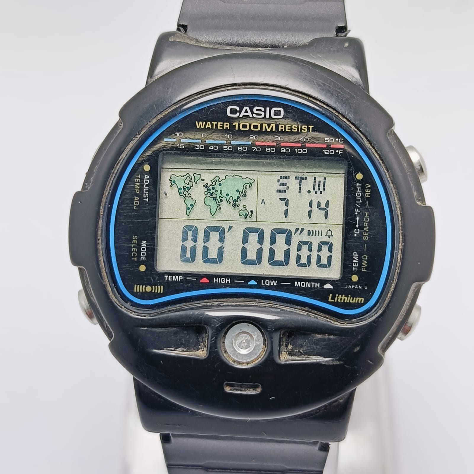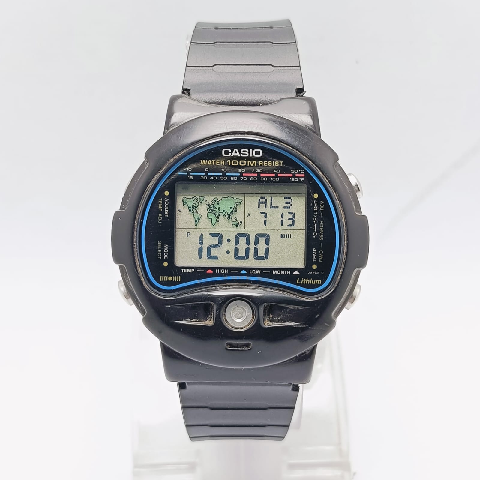 Casio TS-100 Temperature Sensor 815 Alarm digital World Time Vintage Watch