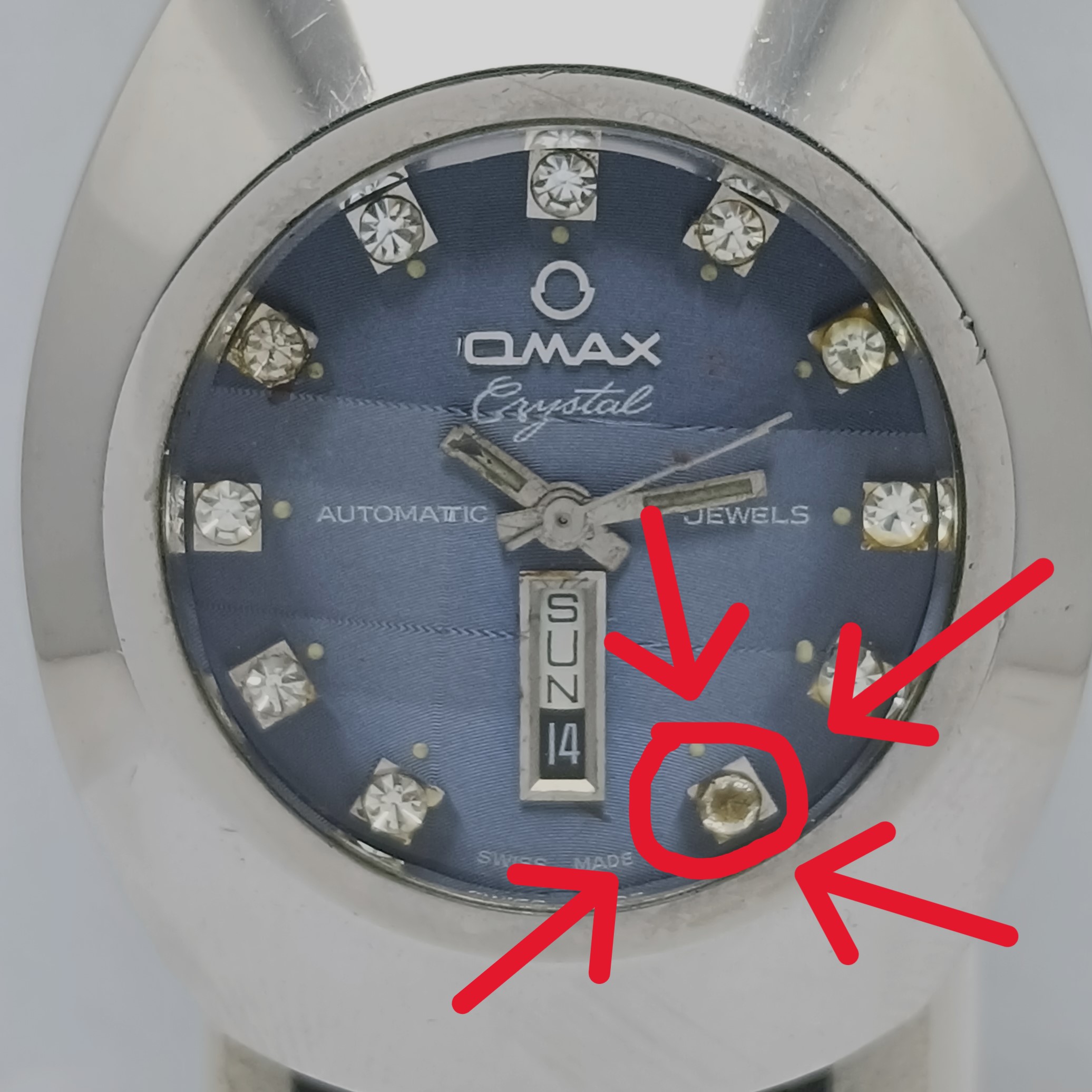 | Model: | Omax Crystal | Features: | 12-Hour Dial, Day/Date |